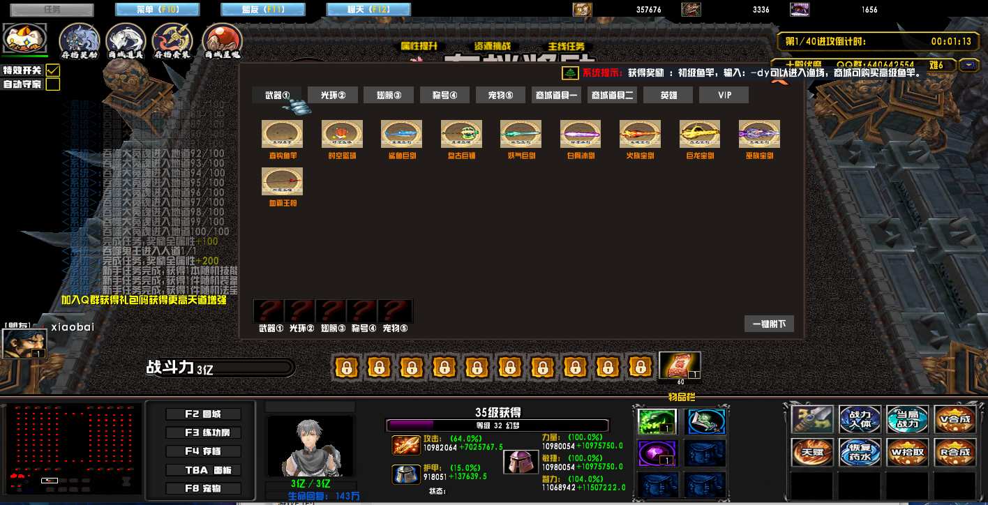 | 技能菜单【光环类技能】 | 自动化菜单【自动加钱木,提升英雄三围】 |