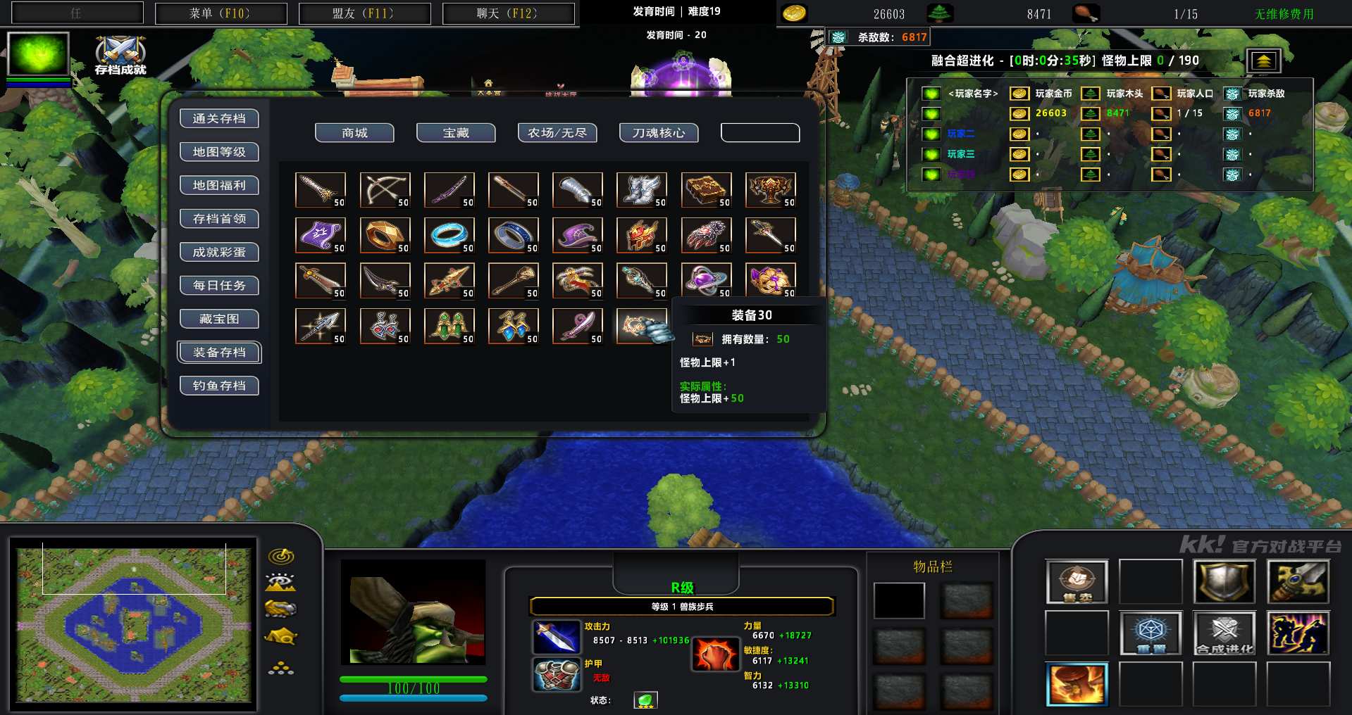 地图名字:融合超进化1.0.22地图下载+全商城特权+全存档+无CD+指令功能