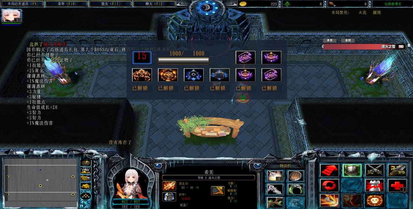 地图名字:肉鸽地牢3.1.153地图下载+全商城特权+全存档+隐藏英雄+无CD+指令功能