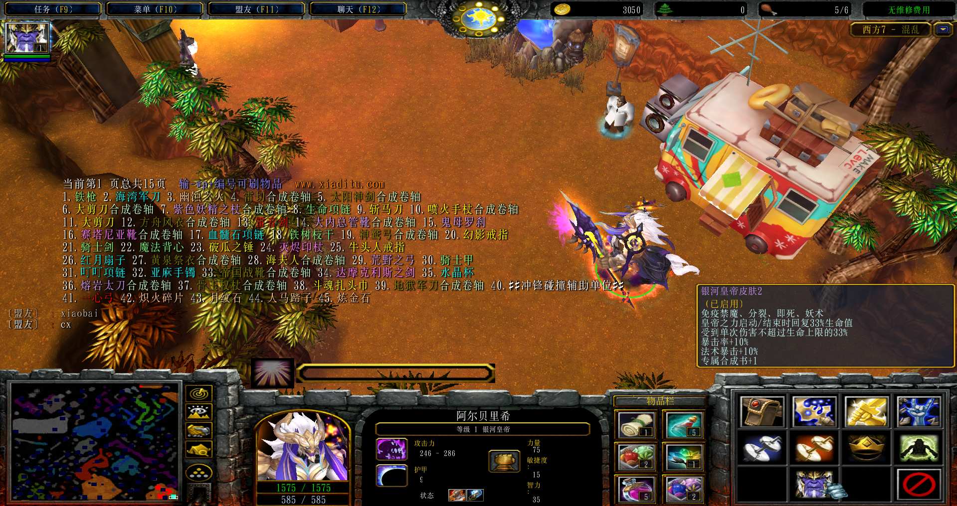 地图名字:西方世界的劫难7 2.2.4地图下载+全商城特权+全存档+隐藏英雄+无CD+指令功能