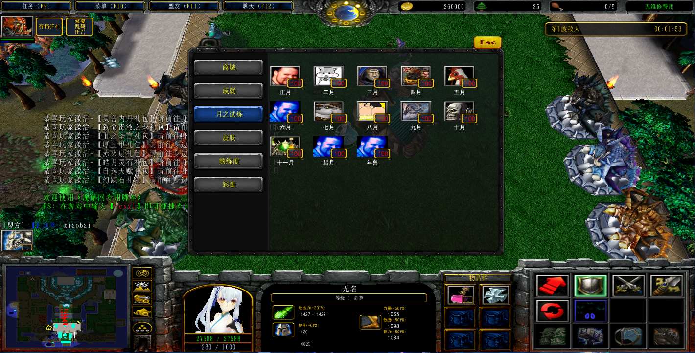 地图名字:神之墓地2.9.118地图下载+全商城特权+全存档+隐藏英雄+无CD+指令功能