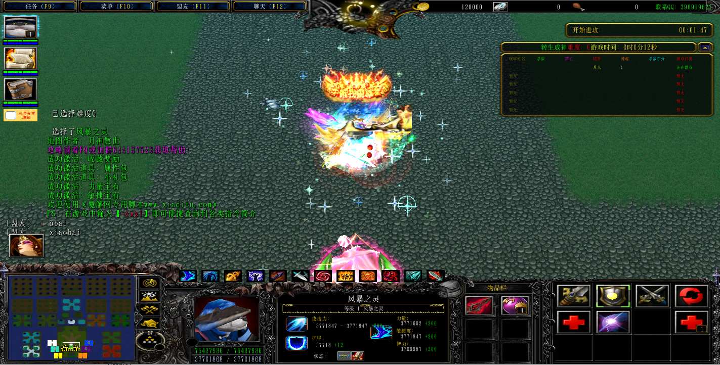 | 技能菜单【光环类技能】 | 自动化菜单【自动加钱木,提升英雄三围】 |