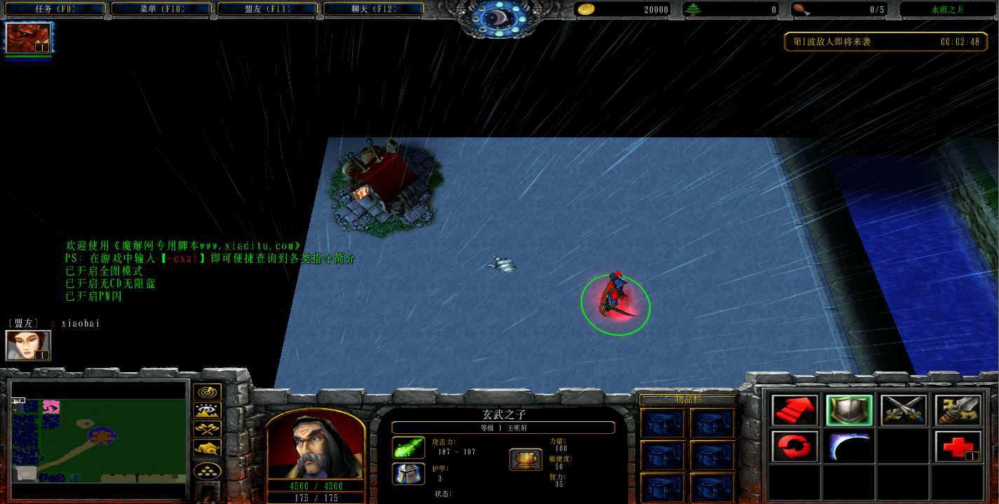 | 技能菜单【光环类技能】 | 自动化菜单【自动加钱木,提升英雄三围】 |
