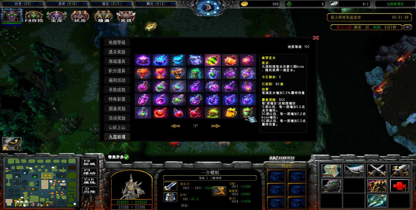 地图名字:山妖出山1.2.2地图下载+全商城特权+全存档+隐藏英雄+无CD+指令功能