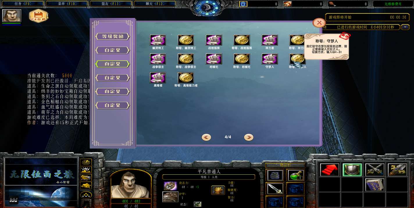 地图名字:无限位面之旅1.9.59地图下载+全商城特权+全存档+隐藏英雄+无CD+指令功能