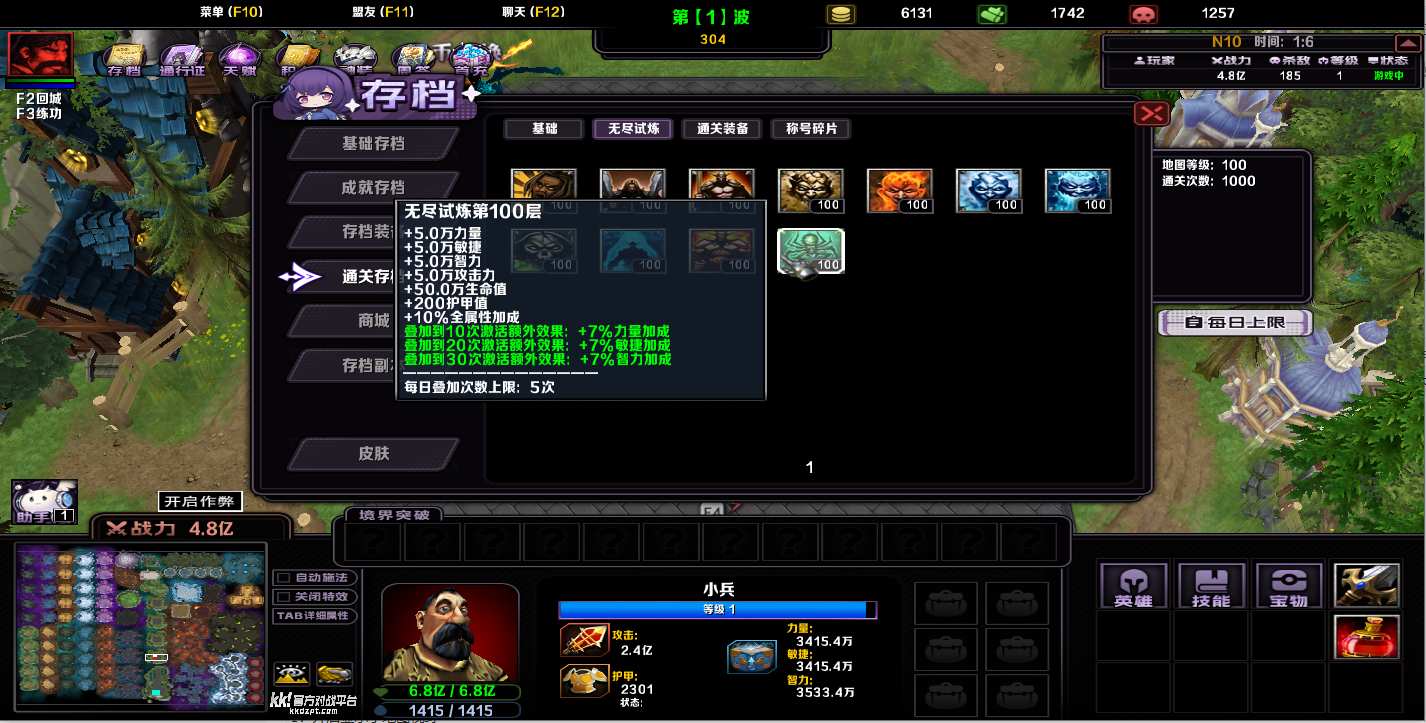 地图名字:全职英雄1.0.74地图下载+全商城特权+全存档+隐藏英雄+无CD+指令功能