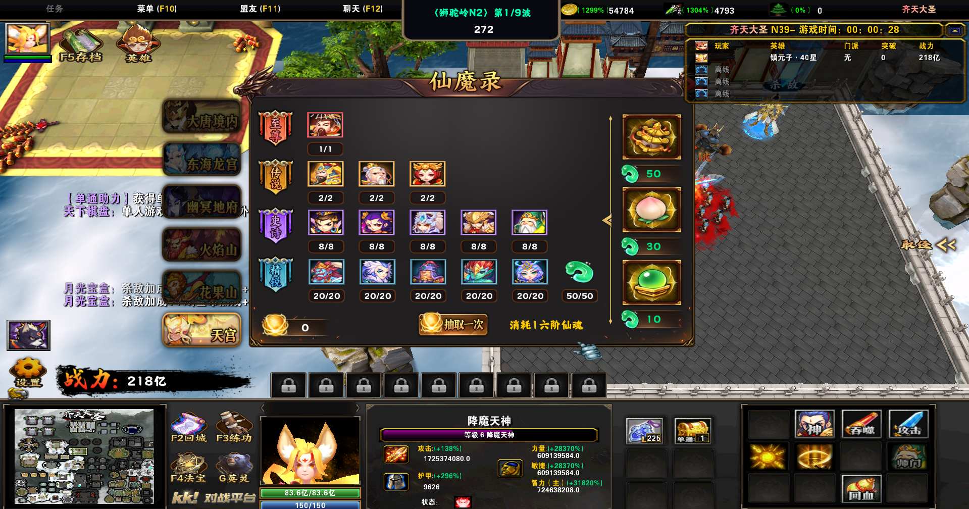 地图名字:齐天大圣1.0.277地图下载+全商城特权+全存档+隐藏英雄+无CD+指令功能