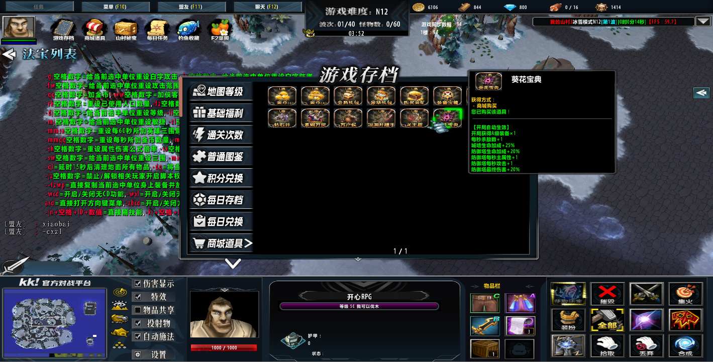 | 技能菜单【光环类技能】 | 自动化菜单【自动加钱木,提升英雄三围】 |