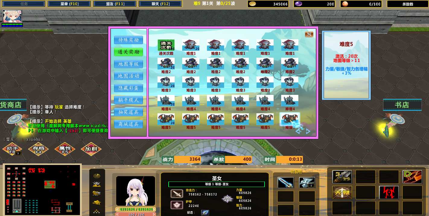 地图名字:秦始皇朝2025 1.2.9地图下载+全商城特权+全存档+隐藏英雄+无CD+指令功能