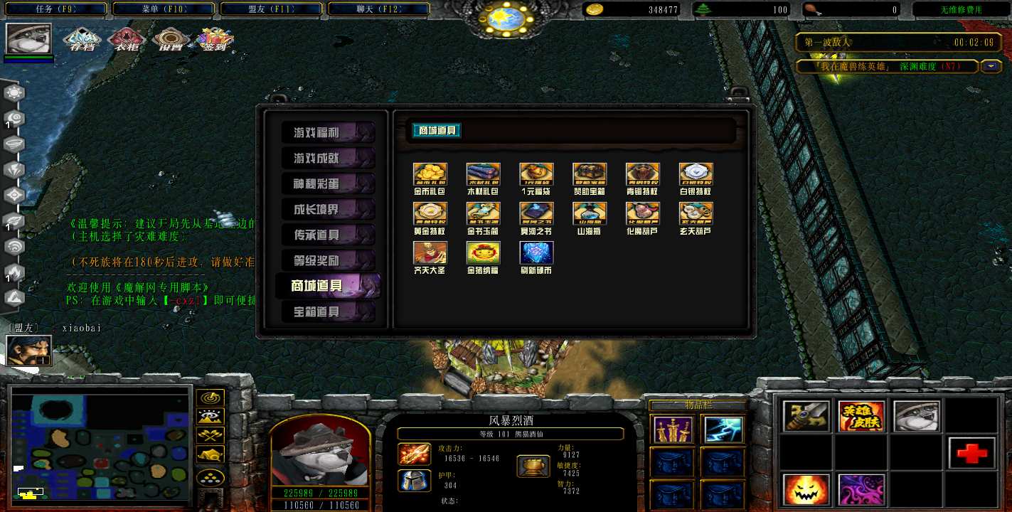 | 技能菜单【光环类技能】 | 自动化菜单【自动加钱木,提升英雄三围】 |
