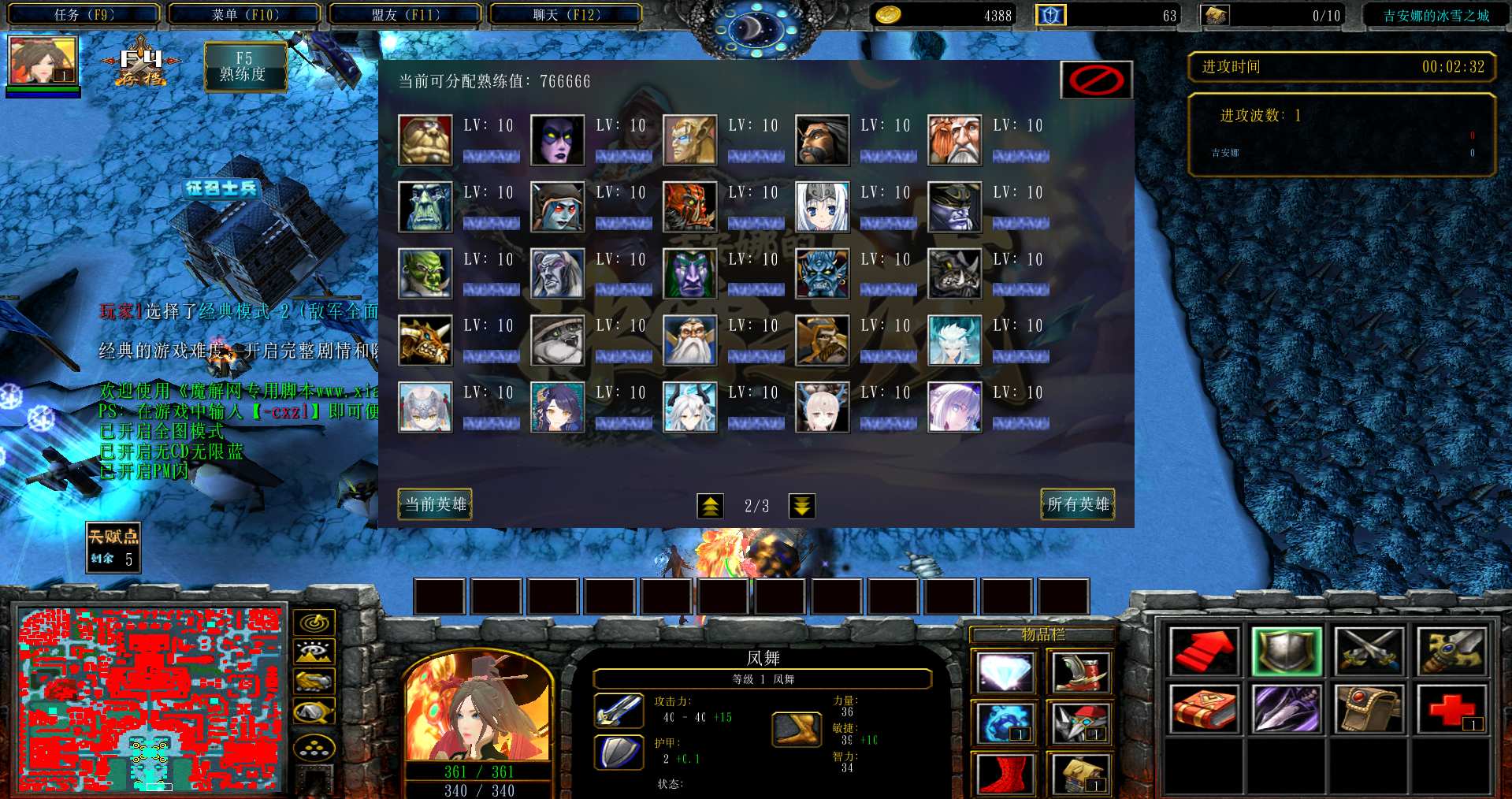 地图名字:吉安娜的冰雪之城2.0.2地图下载+全商城特权+全存档+隐藏英雄+无CD+指令功能