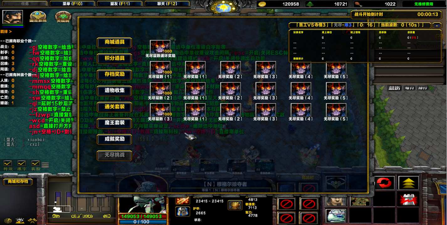 地图名字:苦工VS寺僧3 1.1.99地图下载+全商城特权+全存档+无CD+指令功能