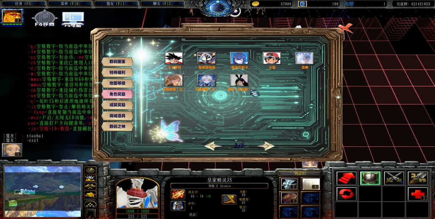 地图名字:数码新世界DW1.0.172地图下载+全商城特权+全存档+隐藏英雄+无CD+指令功能
