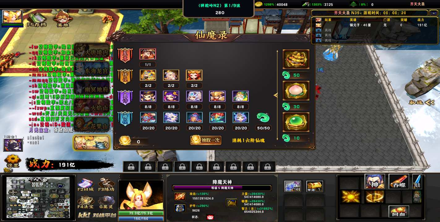 齐天大圣1.0.280地图下载+全商城特权+全存档+隐藏英雄+无CD+指令功能: