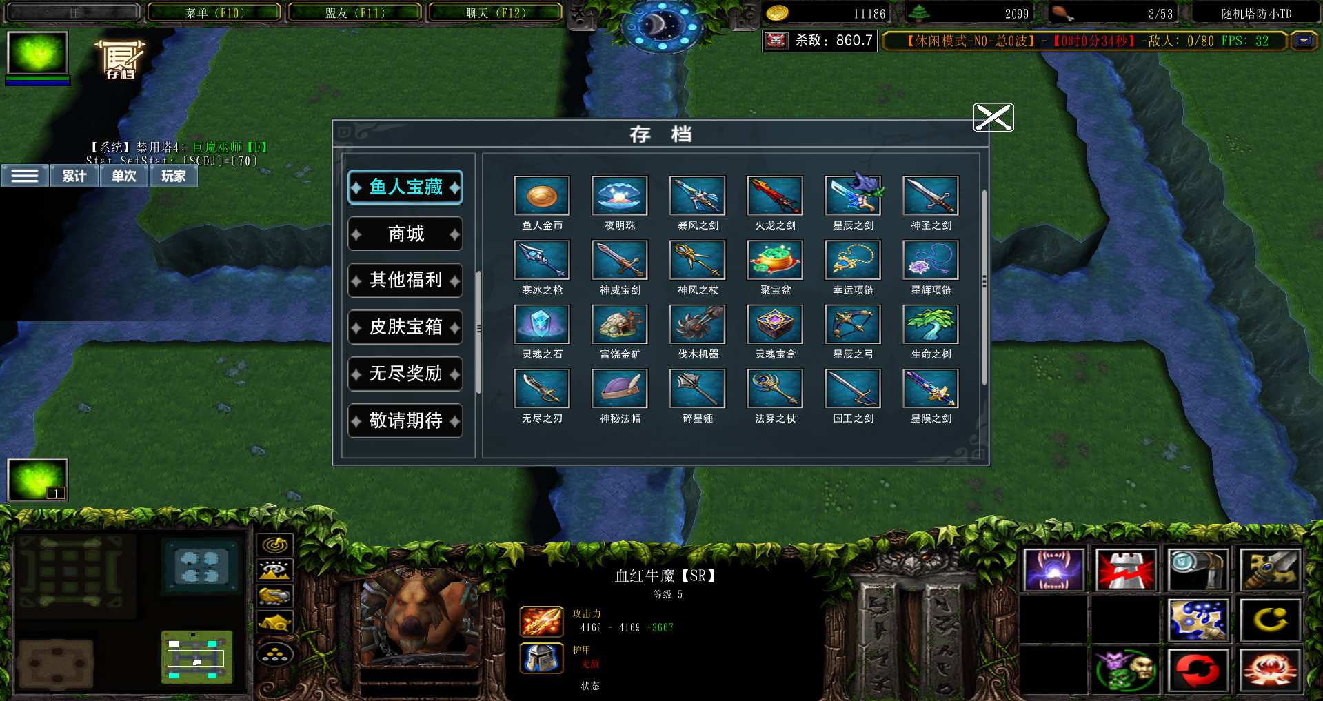 地图名字:随机塔防小TD1.0.4地图下载+全商城特权+全存档+无CD+指令功能
