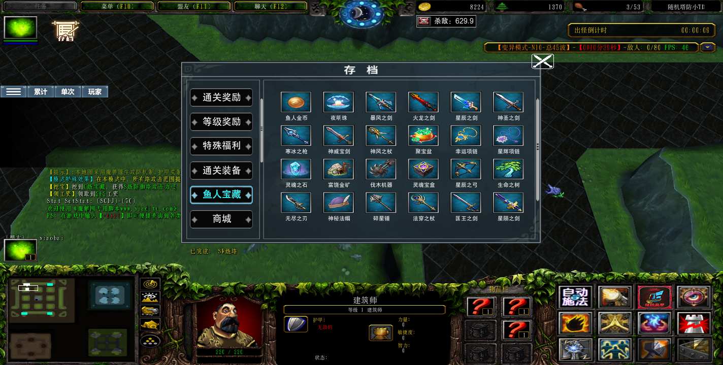 地图名字:随机塔防小TD1.0.5地图下载+全商城特权+全存档+无CD+指令功能