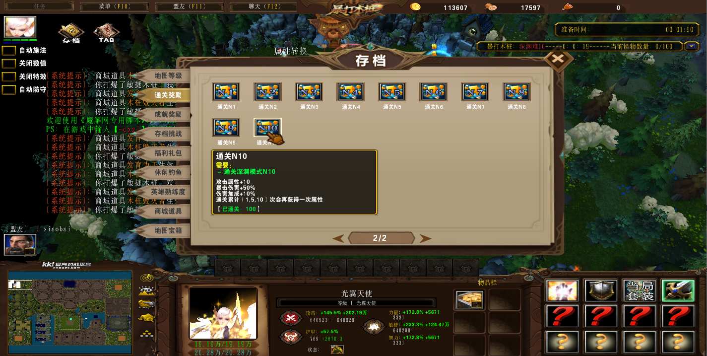 地图名字:暴打木桩1.1.32地图下载+全商城特权+全存档+无CD+指令功能