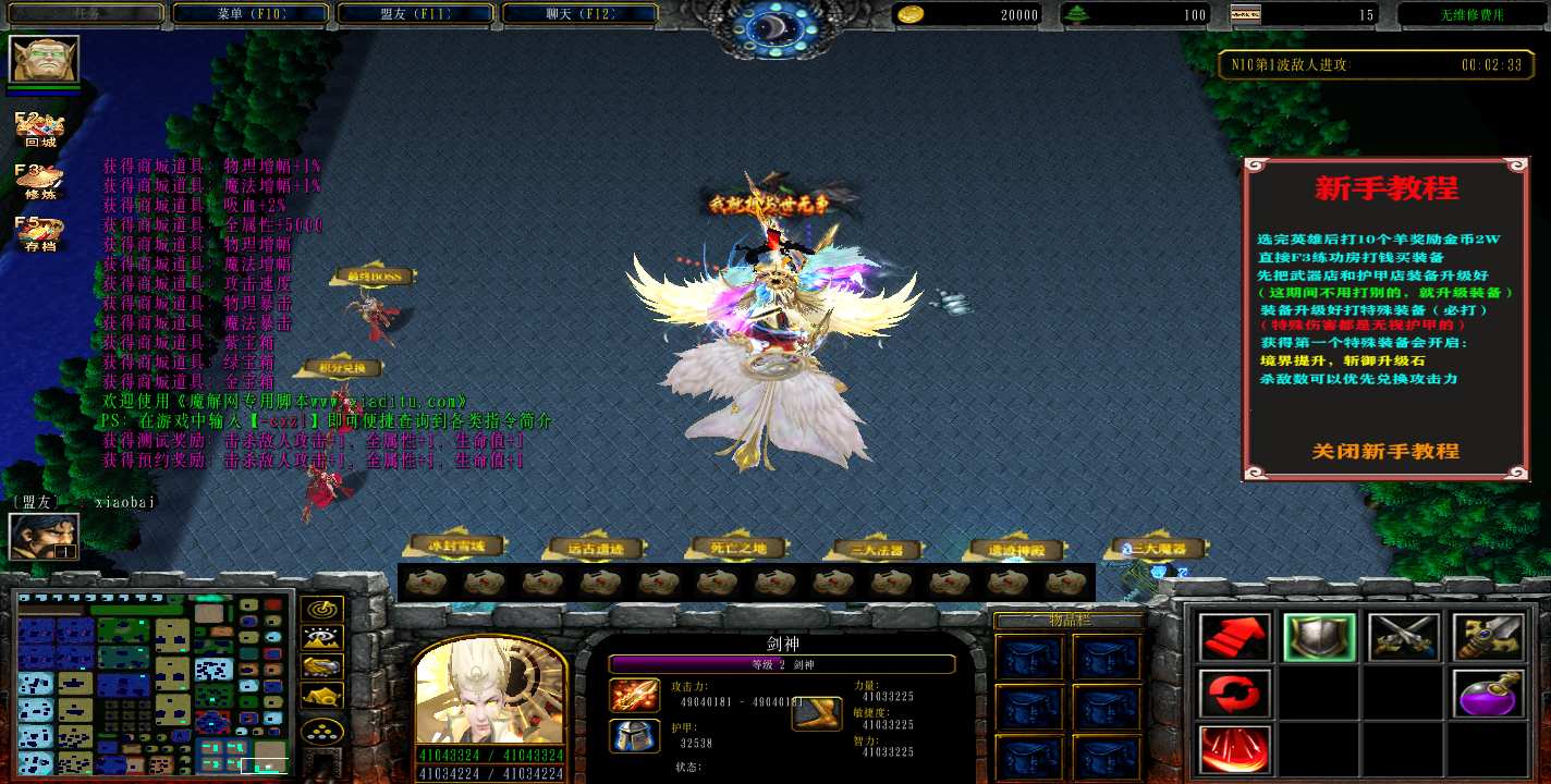 | 技能菜单【光环类技能】 | 自动化菜单【自动加钱木,提升英雄三围】 |