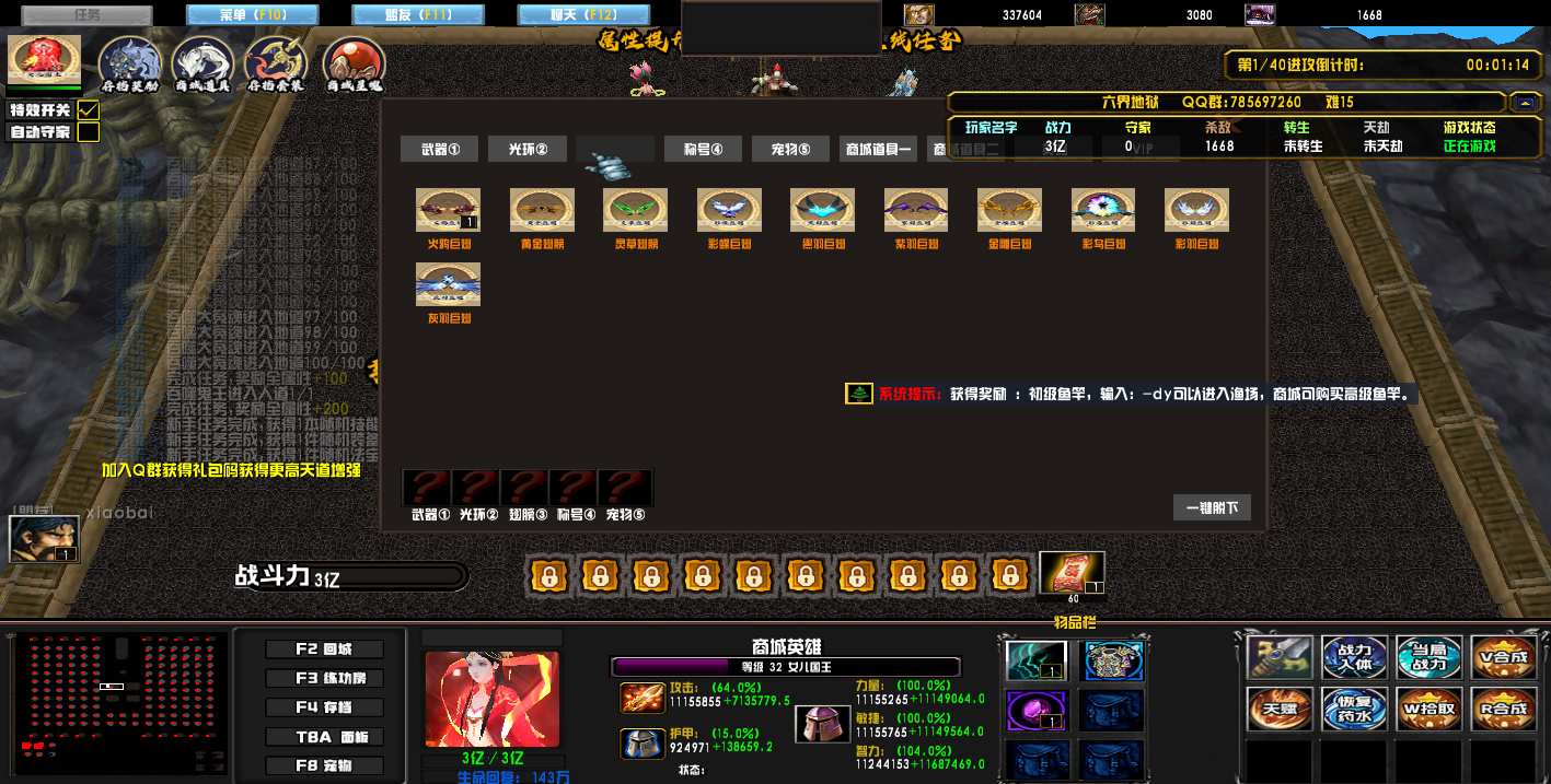 | 技能菜单【光环类技能】 | 自动化菜单【自动加钱木,提升英雄三围】 |