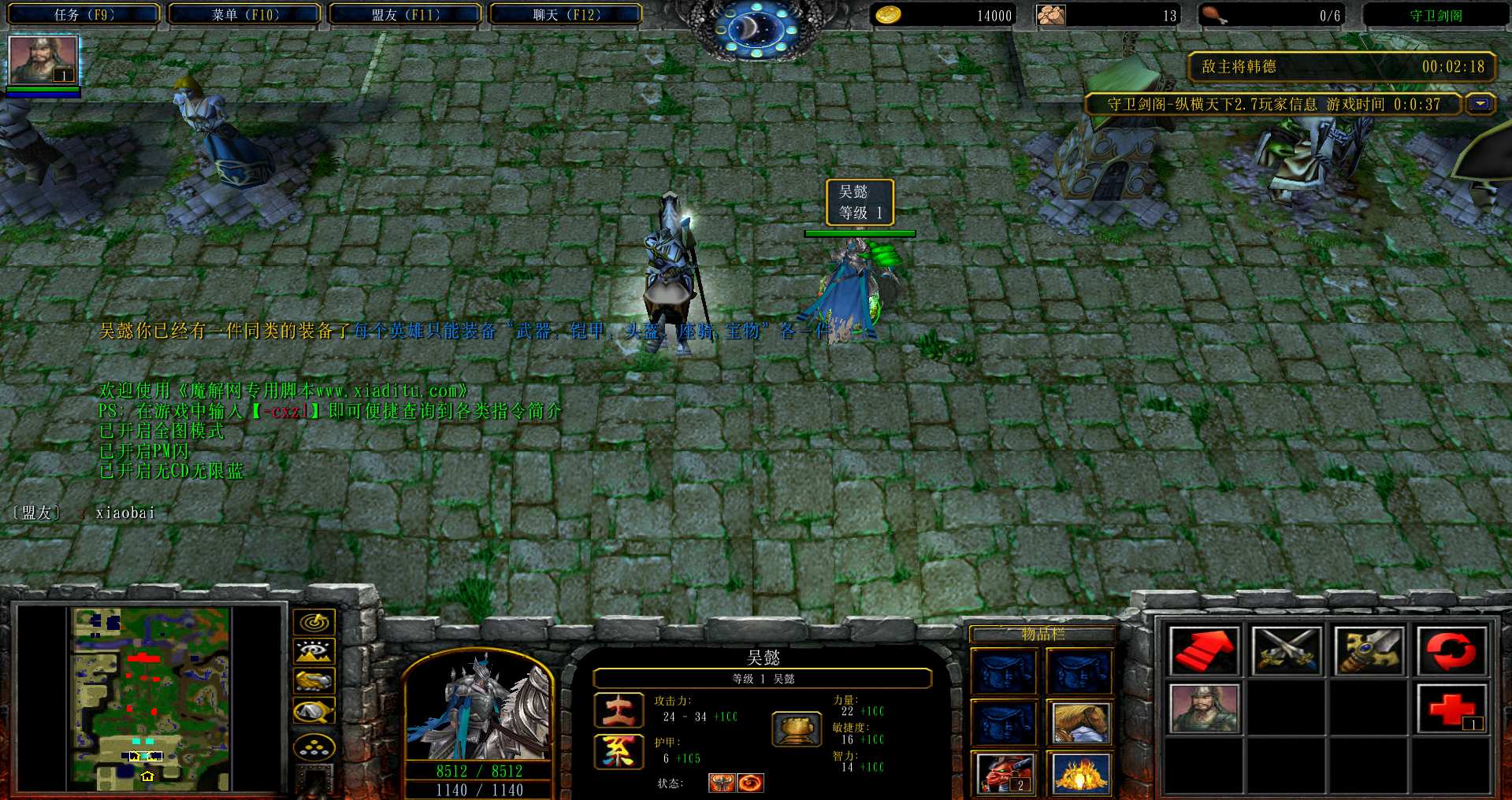 地图名字:守卫剑阁纵横天下2.7_3.8beta地图下载+全商城特权+隐藏英雄+无CD+指令功能