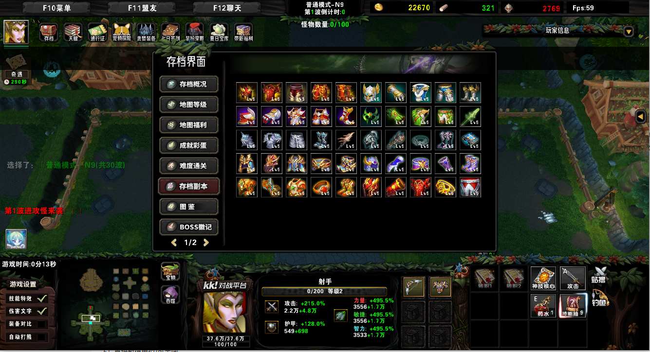 地图名字:弓神传说1.0.32地图下载+全商城特权+全存档+无CD+指令功能
