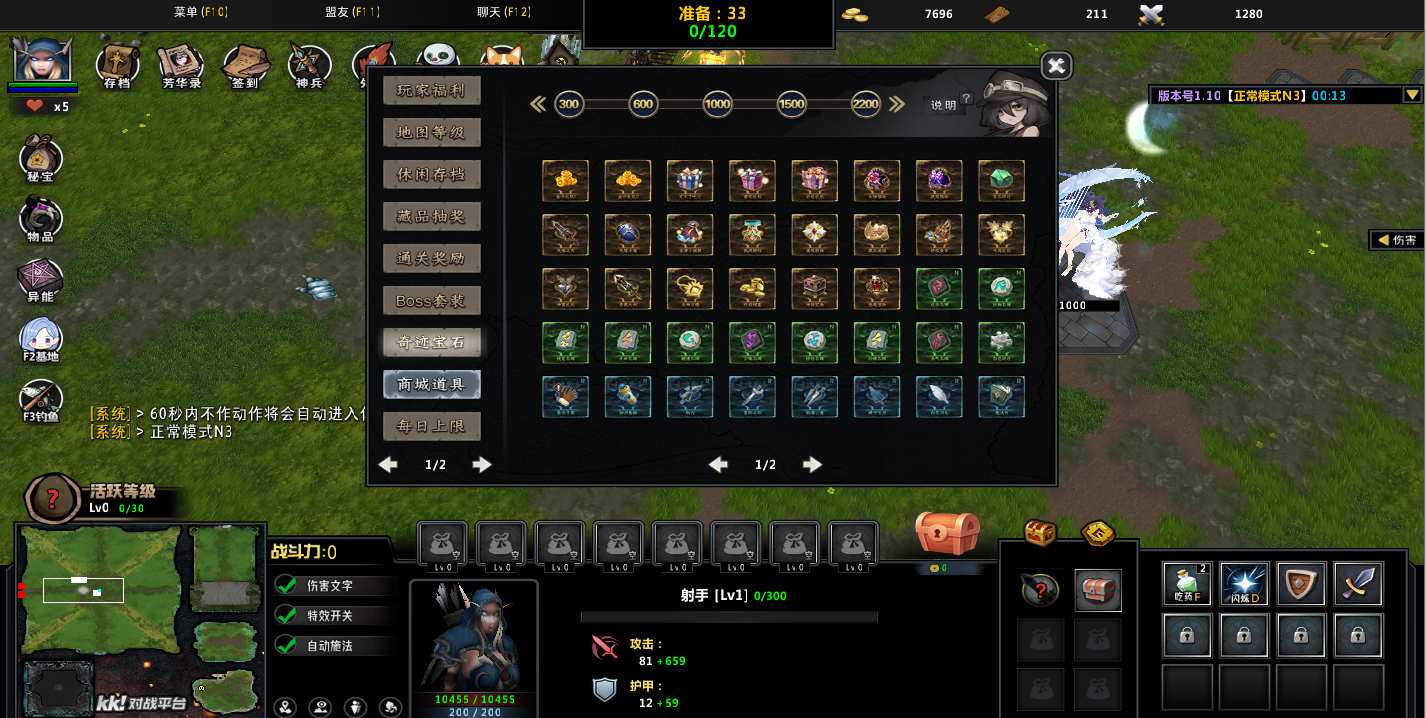 | 技能菜单【光环类技能】 | 自动化菜单【自动加钱木,提升英雄三围】 |