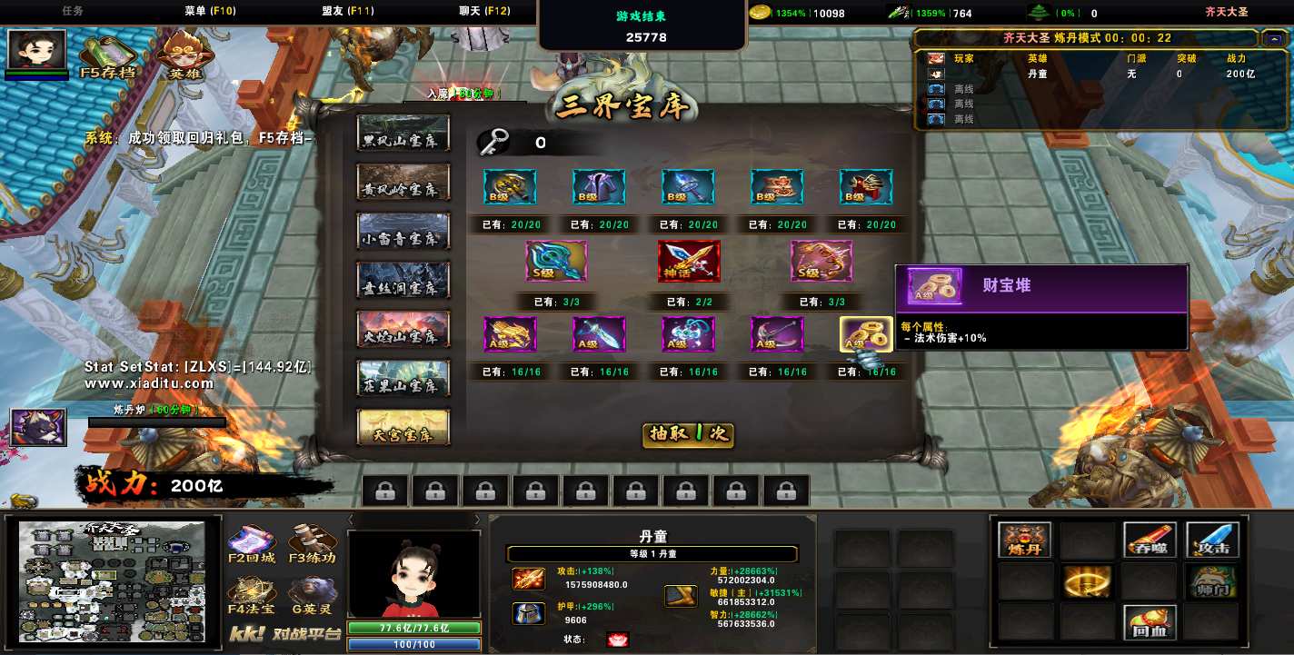 齐天大圣1.0.282地图下载+全商城特权+全存档+隐藏英雄+无CD+指令功能: