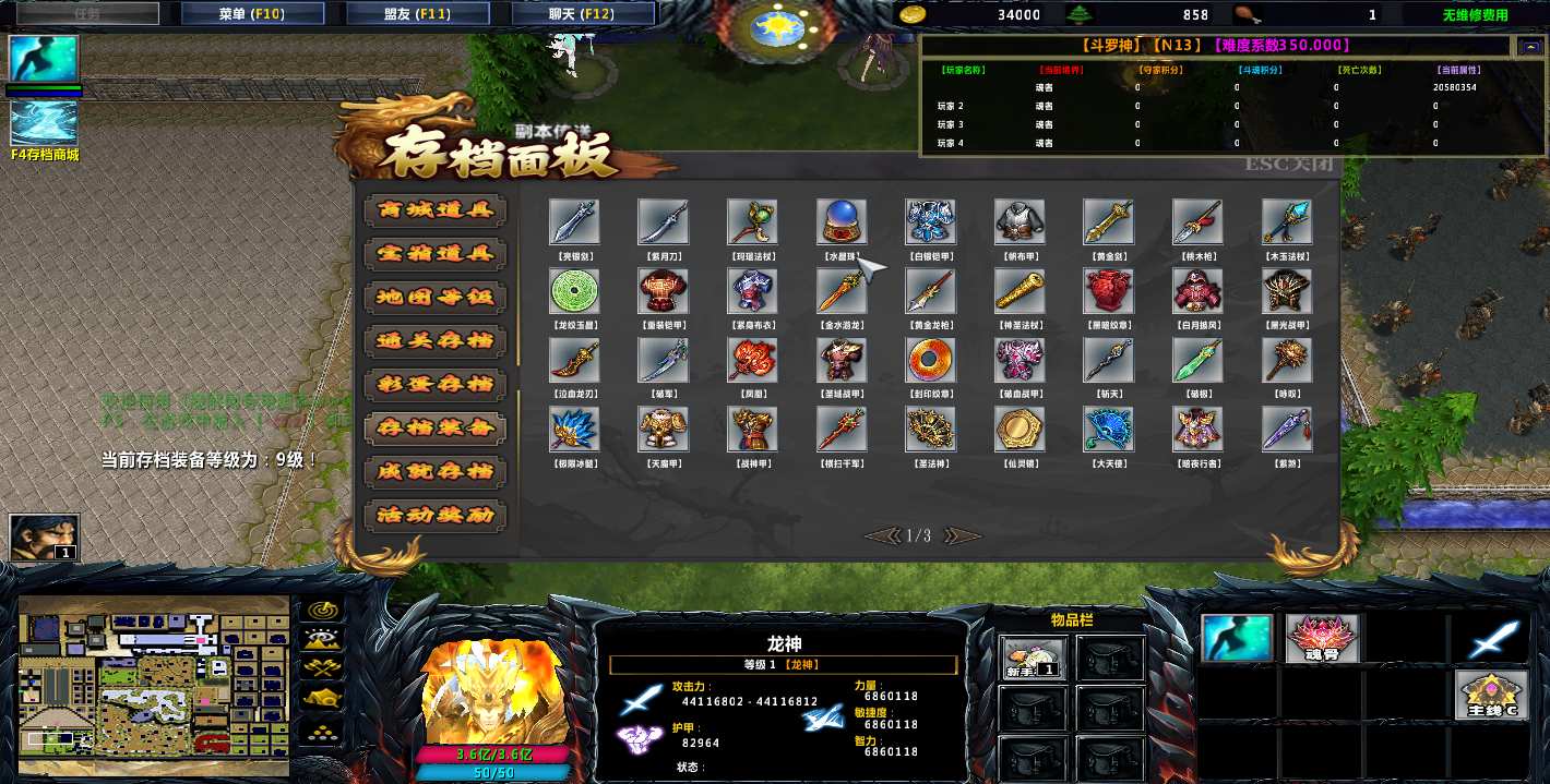 地图名字:斗罗神3 1.9.5地图下载+全商城特权+全存档+隐藏英雄+无CD+指令功能