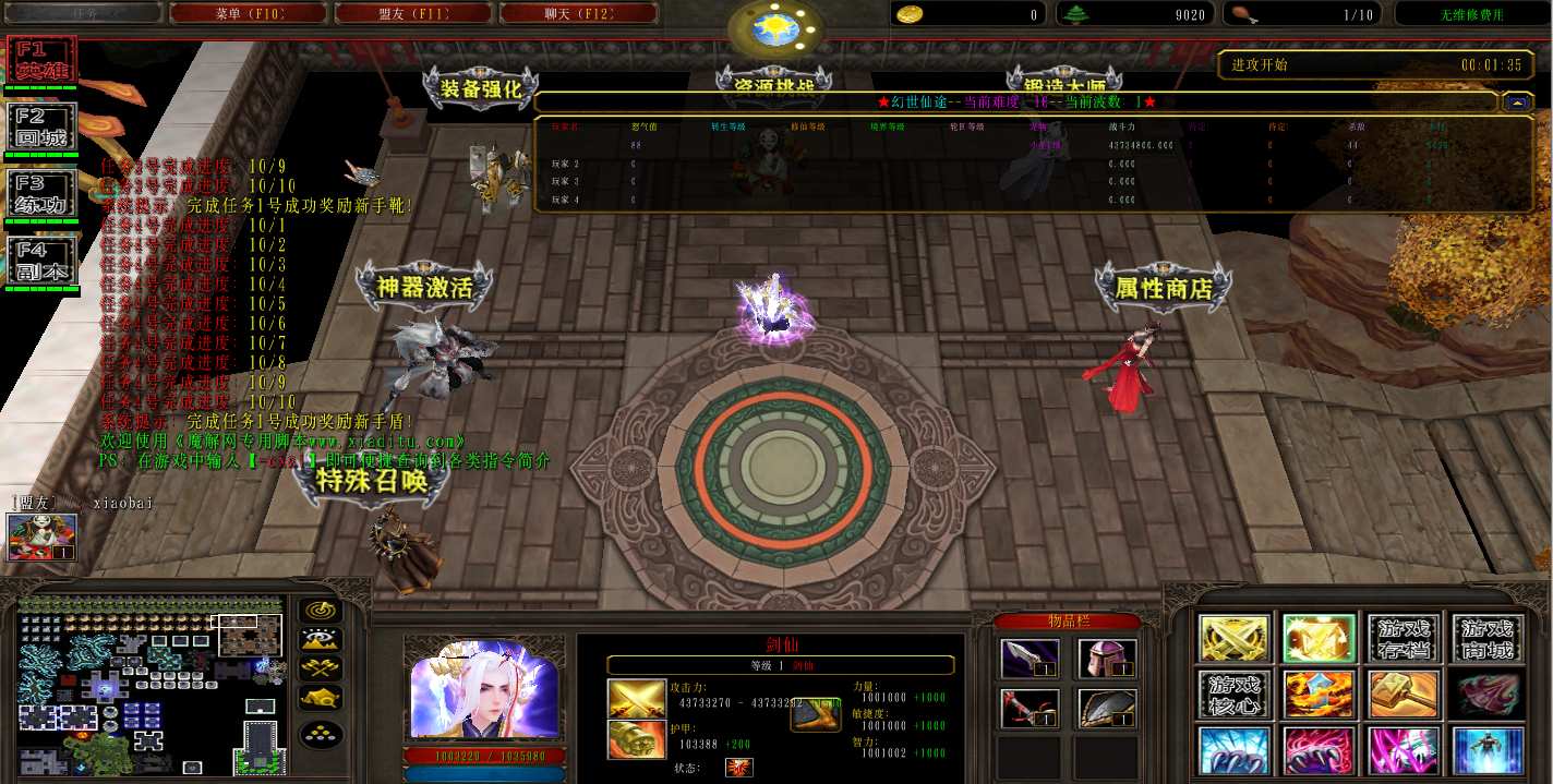 | 技能菜单【光环类技能】 | 自动化菜单【自动加钱木,提升英雄三围】 |