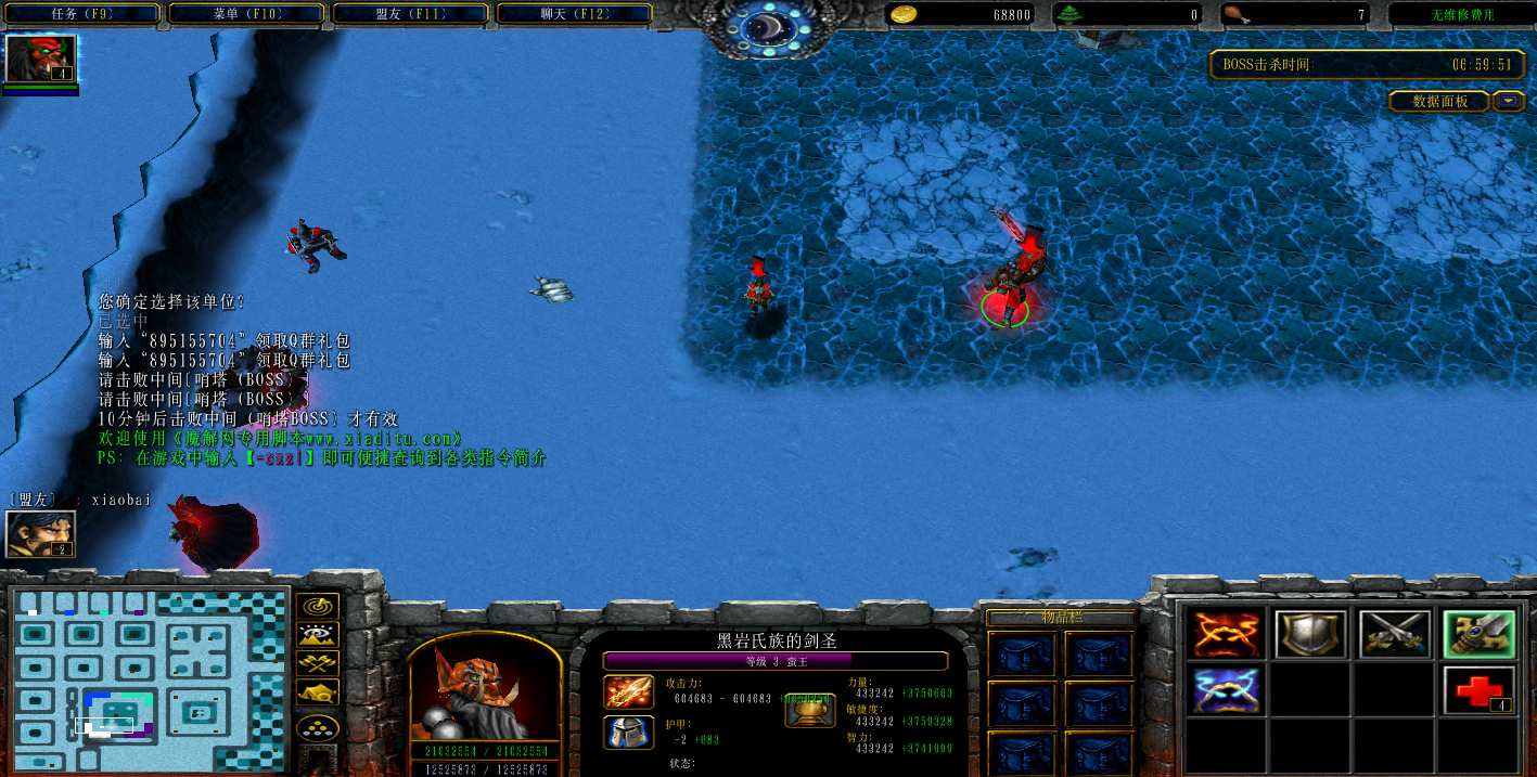 | 技能菜单【光环类技能】 | 自动化菜单【自动加钱木,提升英雄三围】 |