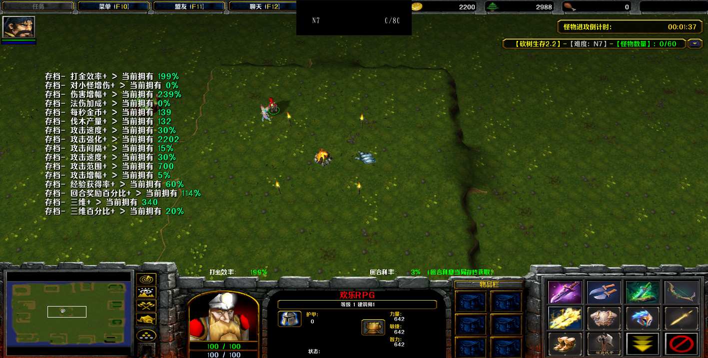 | 技能菜单【光环类技能】 | 自动化菜单【自动加钱木,提升英雄三围】 |