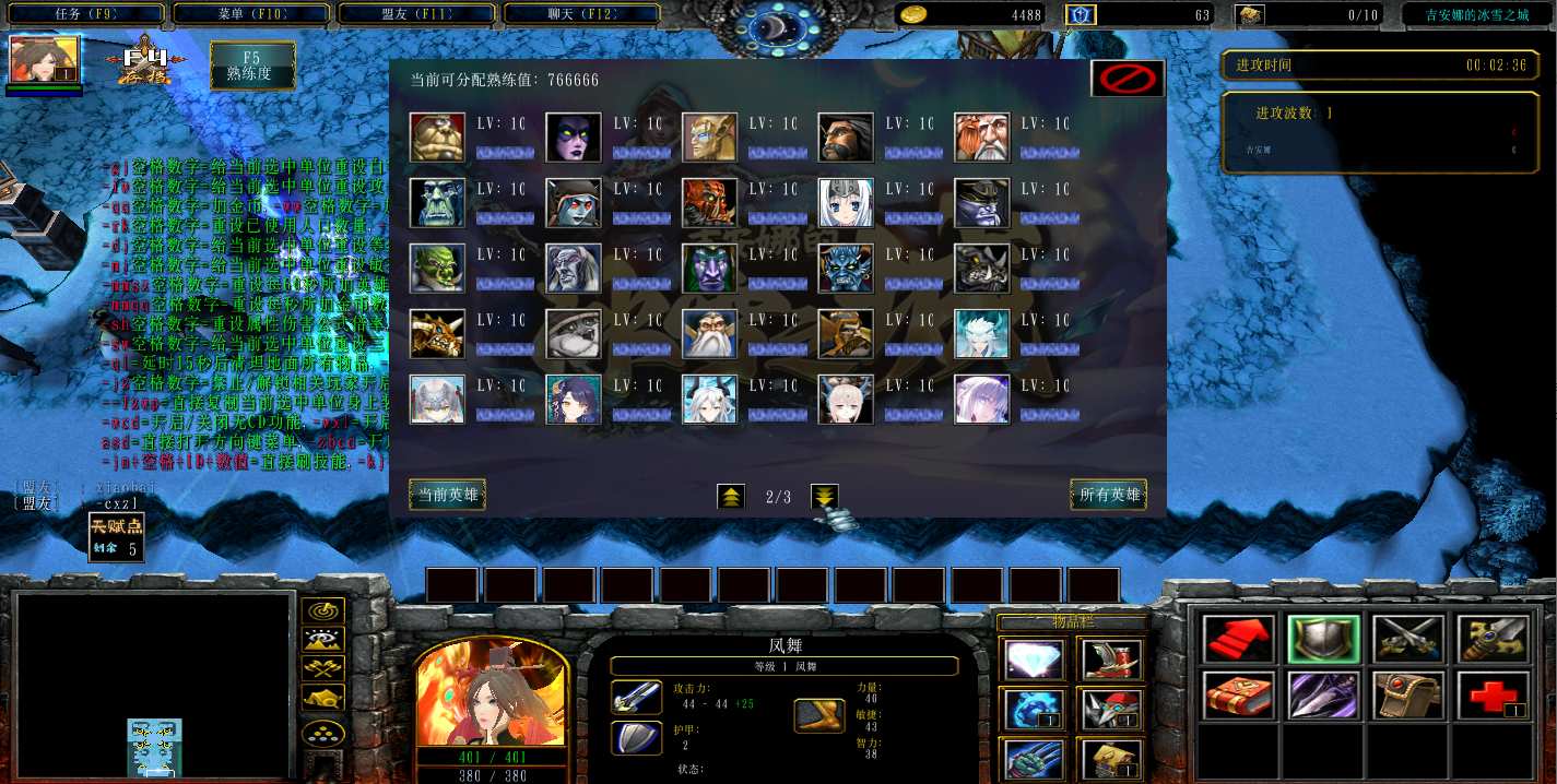 地图名字:吉安娜的冰雪之城2.0.5地图下载+全商城特权+全存档+隐藏英雄+无CD+指令功能