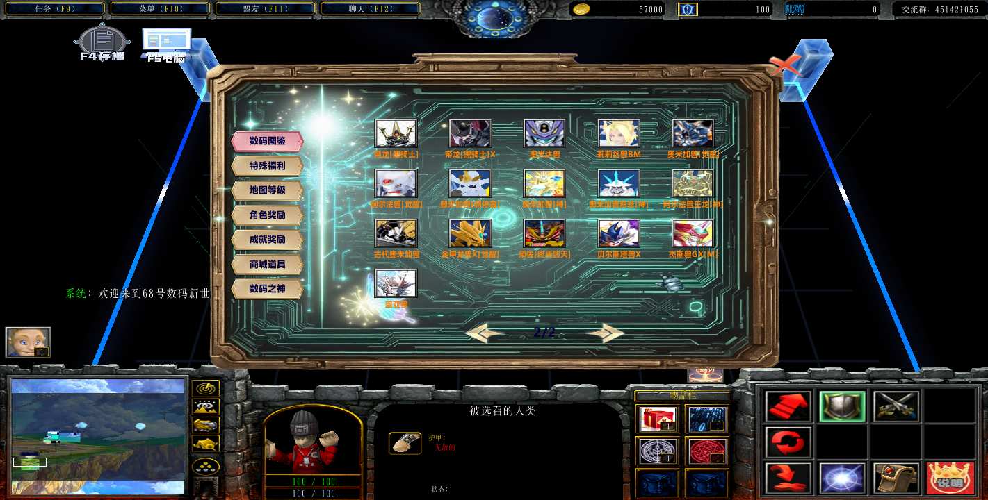 地图名字:数码新世界DW1.0.181地图下载+全商城特权+全存档+隐藏英雄+无CD+指令功能