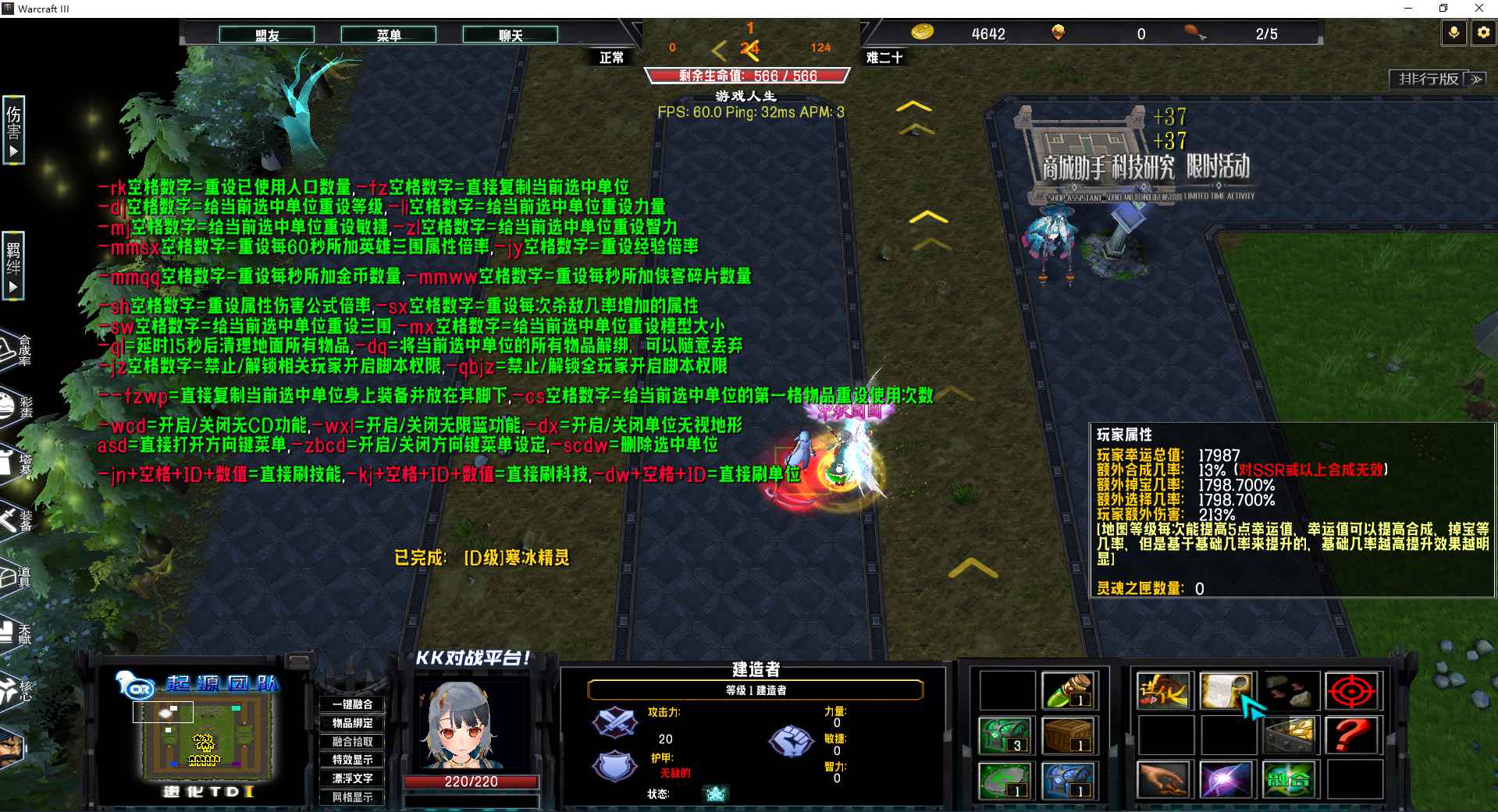 进化TD4.0.78地图下载+全商城特权+全存档+隐藏英雄+无CD+指令功能: