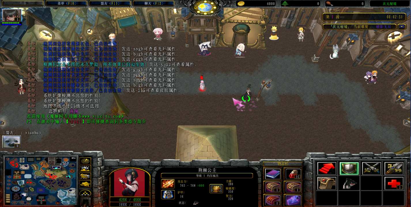 地图名字:次元秘境4.4.6地图下载+全商城特权+全存档+隐藏英雄+无CD+指令功能