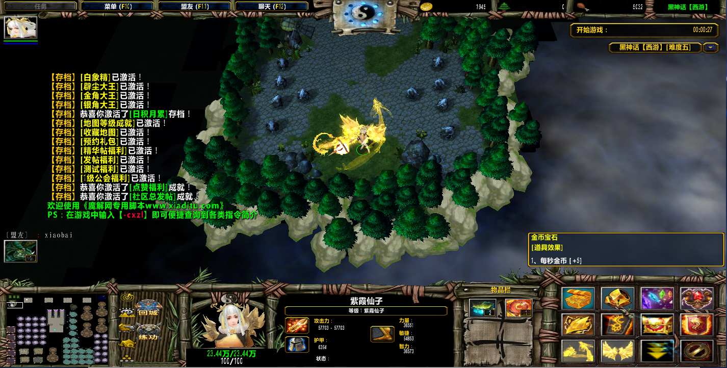 | 技能菜单【光环类技能】 | 自动化菜单【自动加钱木,提升英雄三围】 |