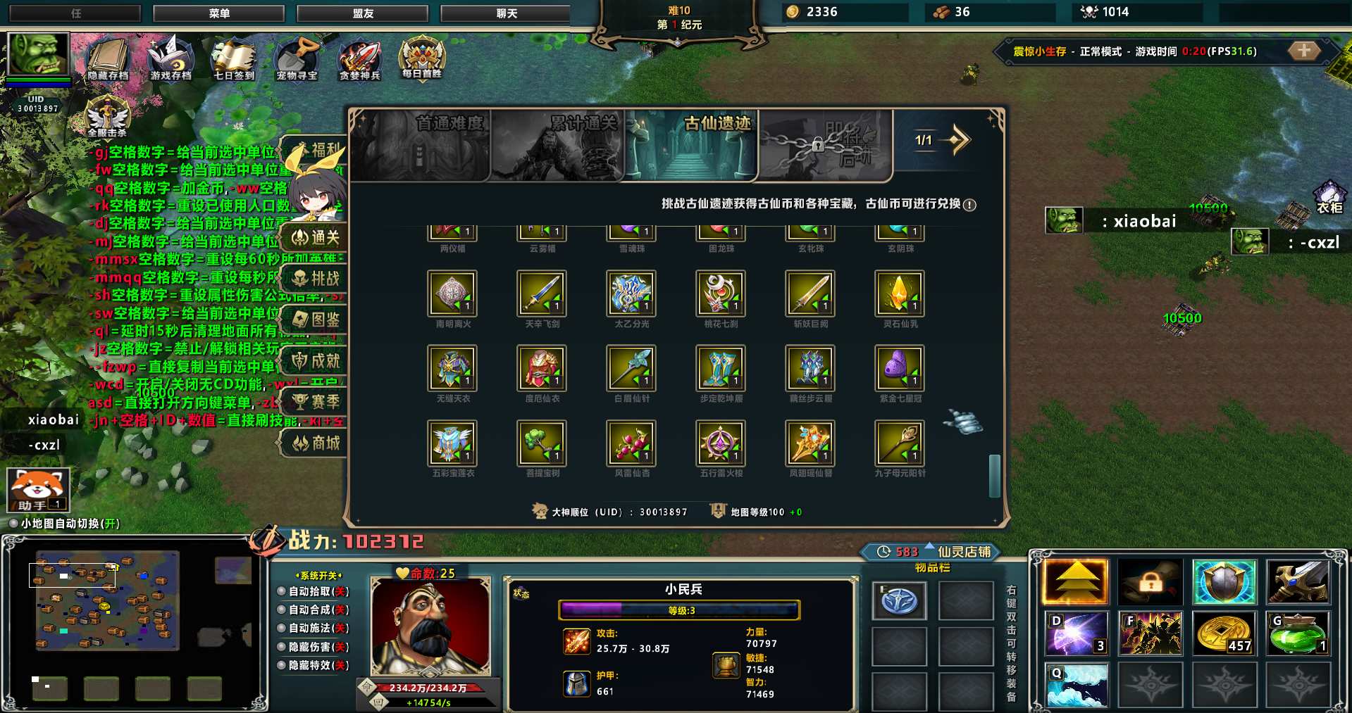 地图名字:震惊小生存1.0.35地图下载+全商城特权+全存档+无CD+指令功能