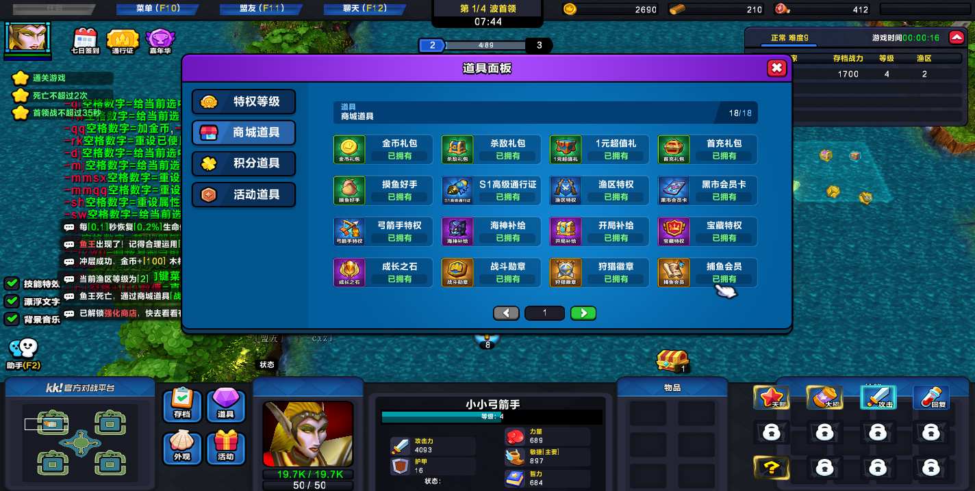| 技能菜单【光环类技能】 | 自动化菜单【自动加钱木,提升英雄三围】 |