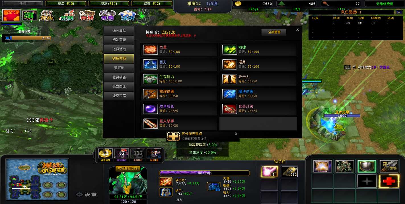 自动化菜单【自动加钱木,提升英雄三围】