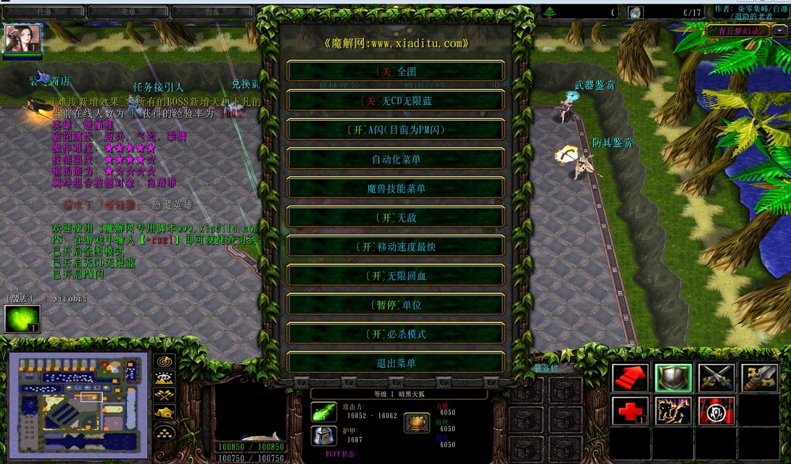 | 技能菜单【光环类技能】 | 自动化菜单【自动加钱木,提升英雄三围】 |