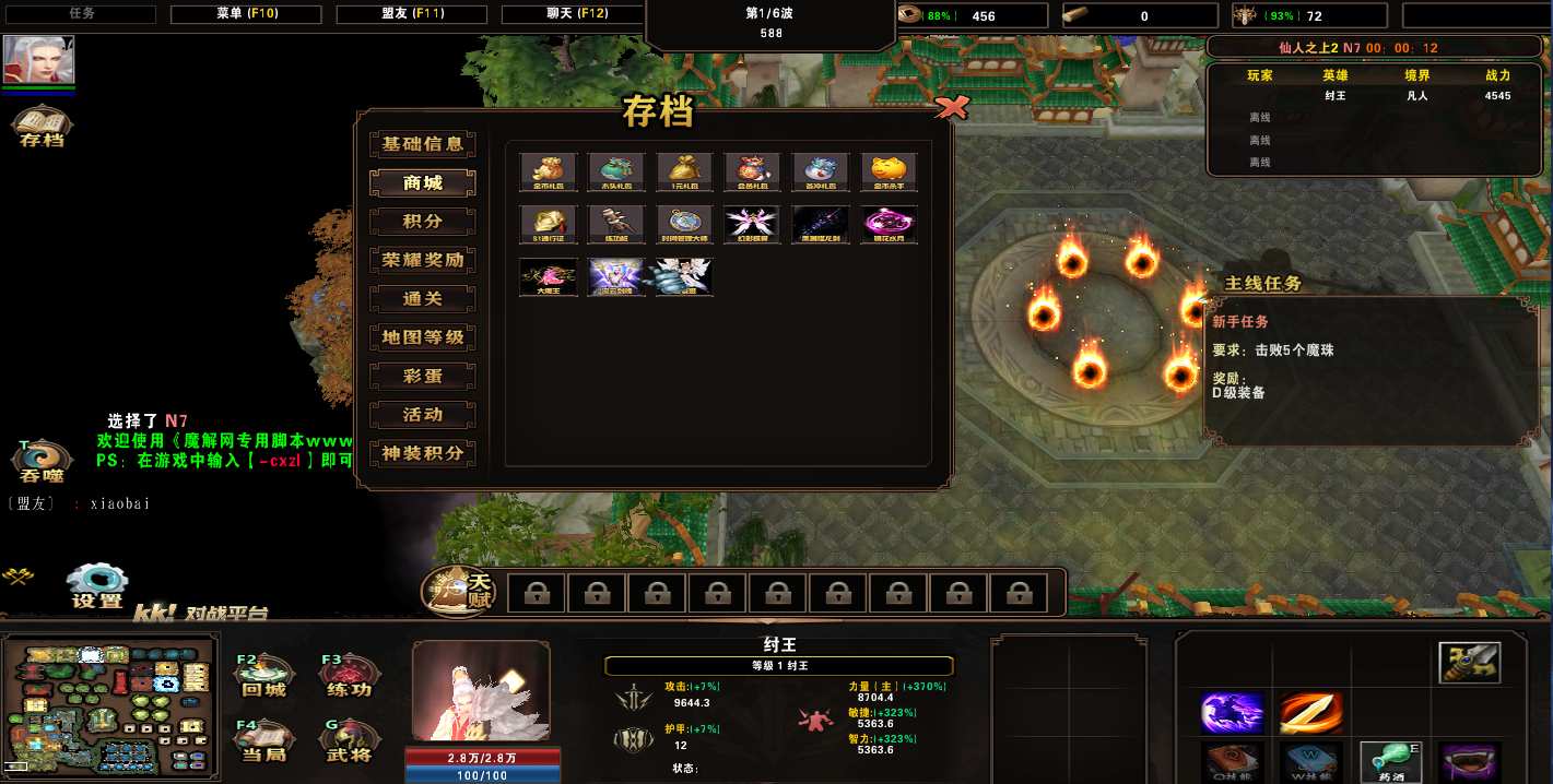 | 技能菜单【光环类技能】 | 自动化菜单【自动加钱木,提升英雄三围】 |