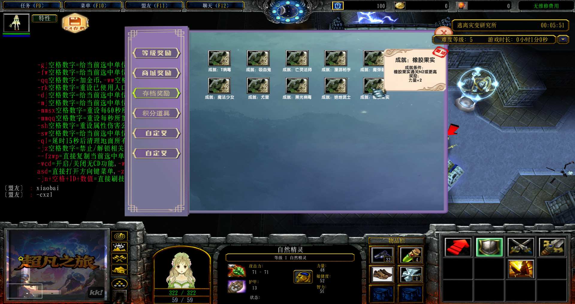 地图名字:超凡之旅1.0.25地图下载+全商城特权+全存档+隐藏英雄+无CD+指令功能