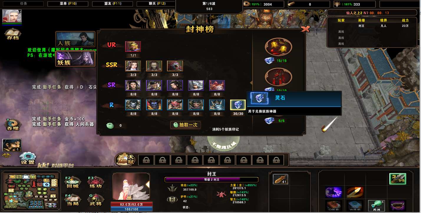 地图名字:仙人之上2 1.0.27地图下载+全商城特权+全存档+隐藏英雄+无CD+指令功能