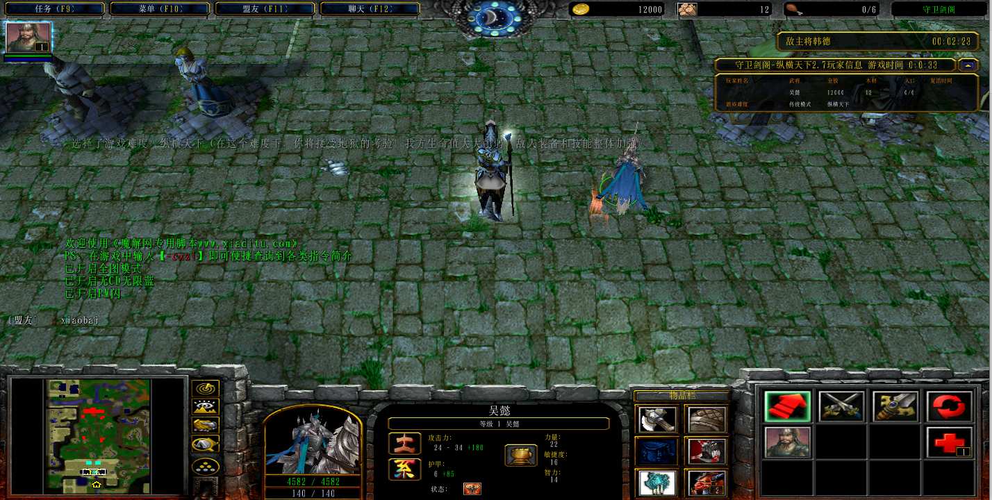 地图名字:守卫剑阁纵横天下2.7_4.1beta地图下载+全商城特权+隐藏英雄+无CD+指令功能