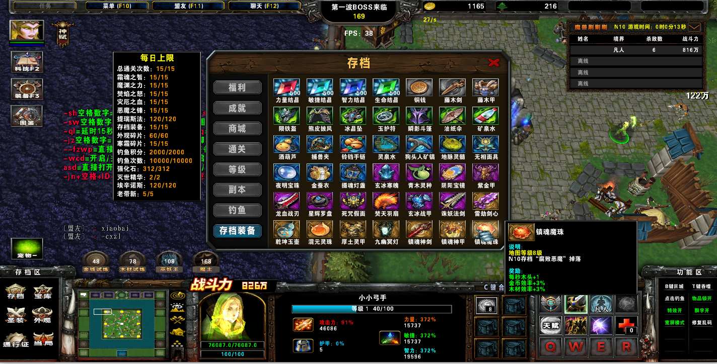 地图名字:魔兽刷刷刷1.1.32地图下载+全商城特权+全存档+无CD+指令功能