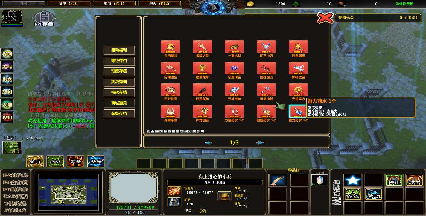 | 技能菜单【光环类技能】 | 自动化菜单【自动加钱木,提升英雄三围】 |