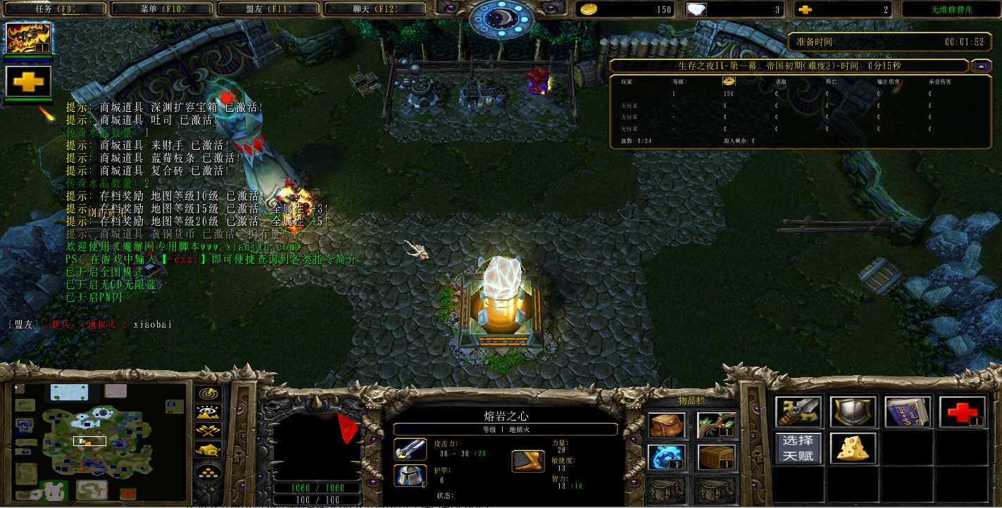| 技能菜单【光环类技能】 | 自动化菜单【自动加钱木,提升英雄三围】 |