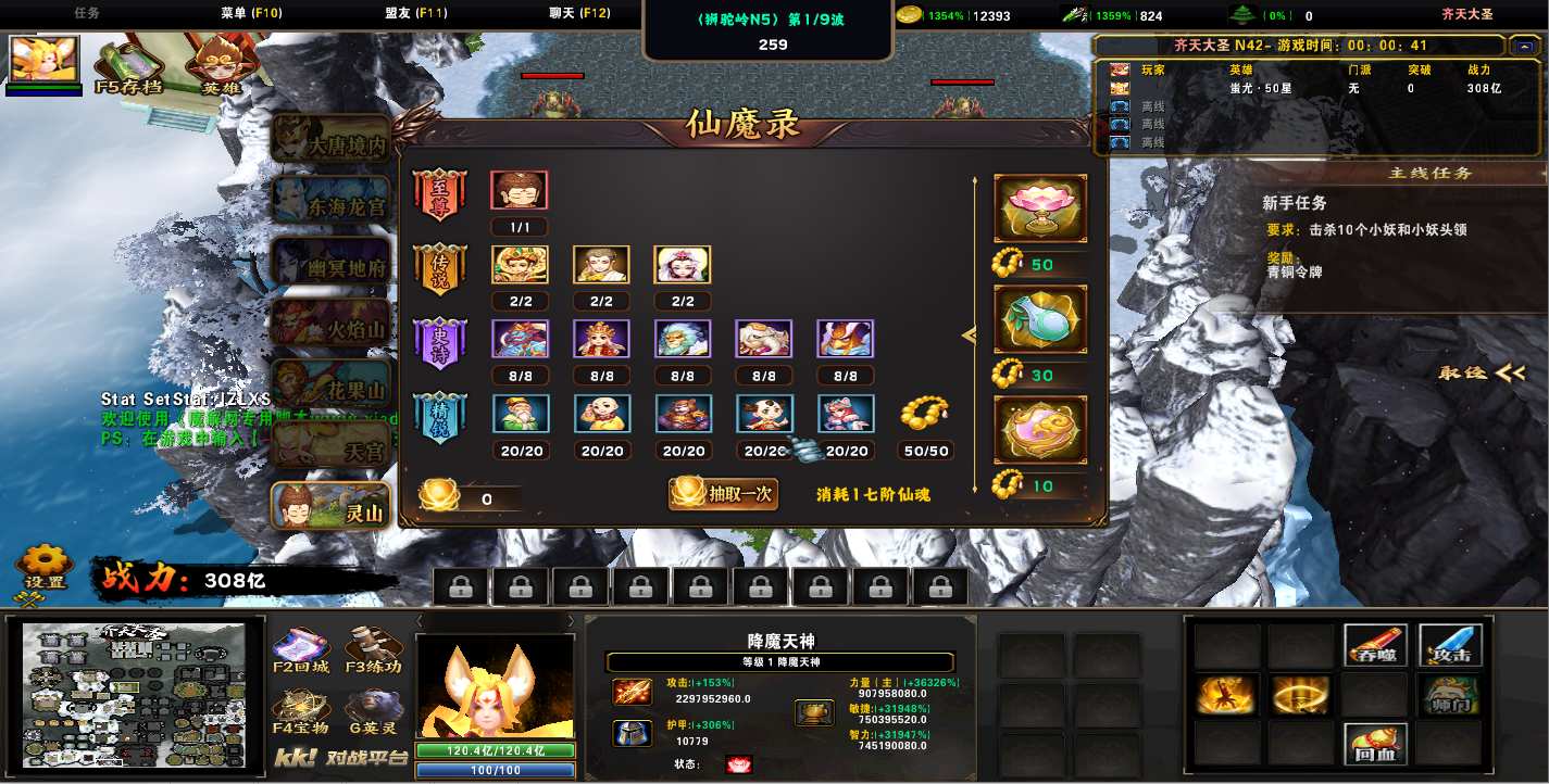 齐天大圣1.0.296地图下载+全商城特权+全存档+隐藏英雄+无CD+指令功能: