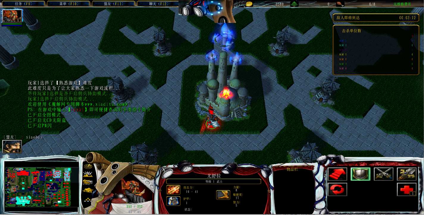 | 技能菜单【光环类技能】 | 自动化菜单【自动加钱木,提升英雄三围】 |