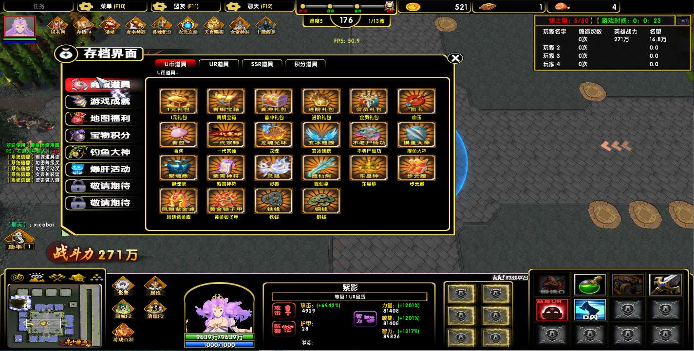 | 技能菜单【光环类技能】 | 自动化菜单【自动加钱木,提升英雄三围】 |